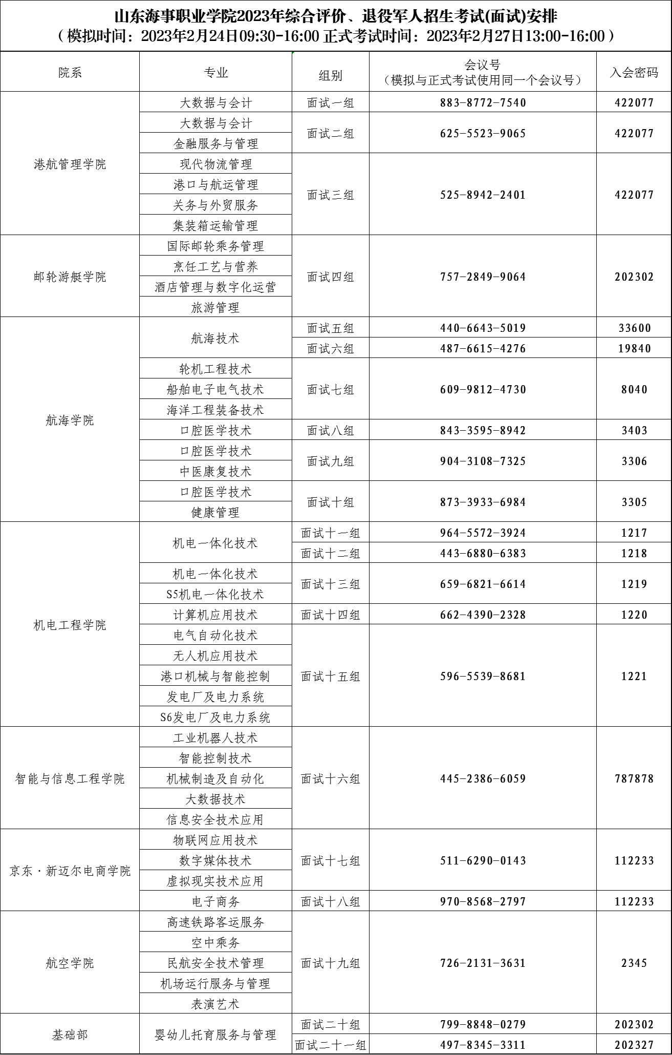 附:山东海事职业学院2023年综合评价、退役军人招生考试(面试)安排